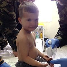 Sanitarios españoles auxilian en el Líbano a un niño con quemaduras