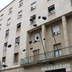 Globos negros en recuerdo de los muertos en el tajo en Almería