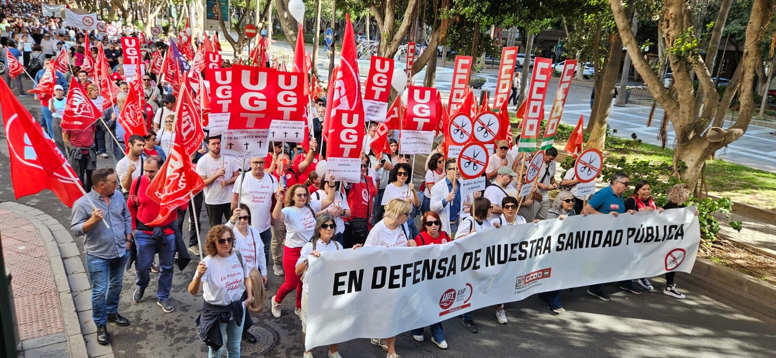Una marcha, la de Almería, que ha congregado a alrededor de un millar de personas -cifra en la que coinciden tanto la organización como la Subdelegación del Gobierno- y que ha contado con numerosos representantes de partidos políticos como PSOE, Podemos, IU o Equo mientras que sindicatos con amplia presencia en el sistema sanitario de Andalucía, como Satse o CSIF han optado por no responder a la llamada.