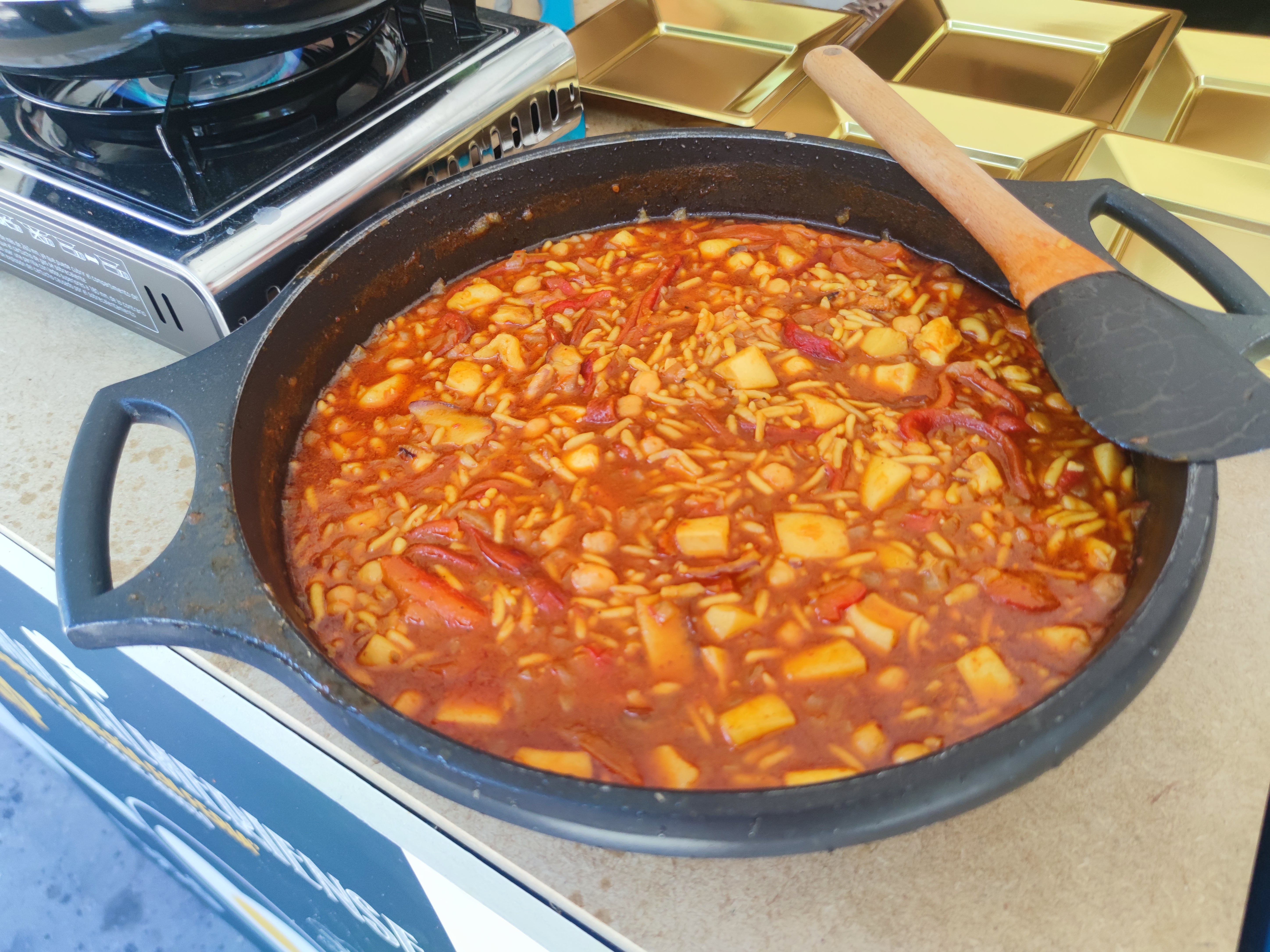 Pero antes de comenzar con el proceso de elaboración, eran indispensables los ingredientes que requiere este tradicional plato de cuchara almeriense al que, quizás, no acompañaban los 41 grados a la sombra que se podían 'degustar' en la capital ayer.