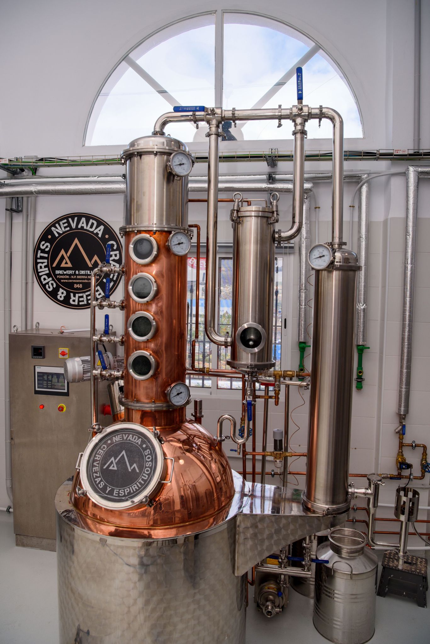 En ella disponen de un alambique multifunción que puede operarse como un alambique tradicional de olla, pero que también permite hacer la destilación y la aromatización de la ginebra por arrastre de vapor, técnicas más modernas que se utilizan hoy día en el mundo de la ginebra. «Ya se conoce un poco más cómo actúa la temperatura sobre los botánicos (ingredientes aromáticos) y cómo afectan al sabor y al aroma», esclarece, «y ese conocimiento, con una tecnología adecuada, es lo que permite hacer productos que puedan competir hoy día a nivel internacional, como ha ocurrido con la Nevada Citrus Dry Gin».