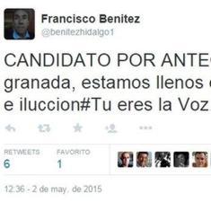 El candidato de Unión, Progreso y Democracia (UPyD) a la Alcaldía de Antequera (Málaga), Francisco Benítez, ha recibido varias solicitudes a través de Twitter ... y por correo electrónico para que cierre su cuenta en esta red social por faltas de ortografía.