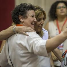 María Salmerón, conocida en Sevilla por participar en programas de ayuda a mujeres maltratadas, recibió este jueves el respaldo y la solidaridad de todos los líderes políticos andaluces en un gesto inusual en el Parlamento andaluz. Así se pudo ver a Susana Díaz, Juanma Moreno, Antonio Maíllo, Juan Marín y Teresa Rodríguez acercarse a esta mujer para solidarizarse y respaldar con ello la petición de indulto.