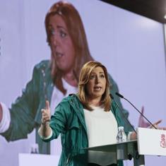 La presidenta andaluza convierte el acto socialista del 28F en su primer mitin de las primarias | Más de dos mil militantes arropan a la política sevillana y aplauden sus menciones a Chaves y Griñán