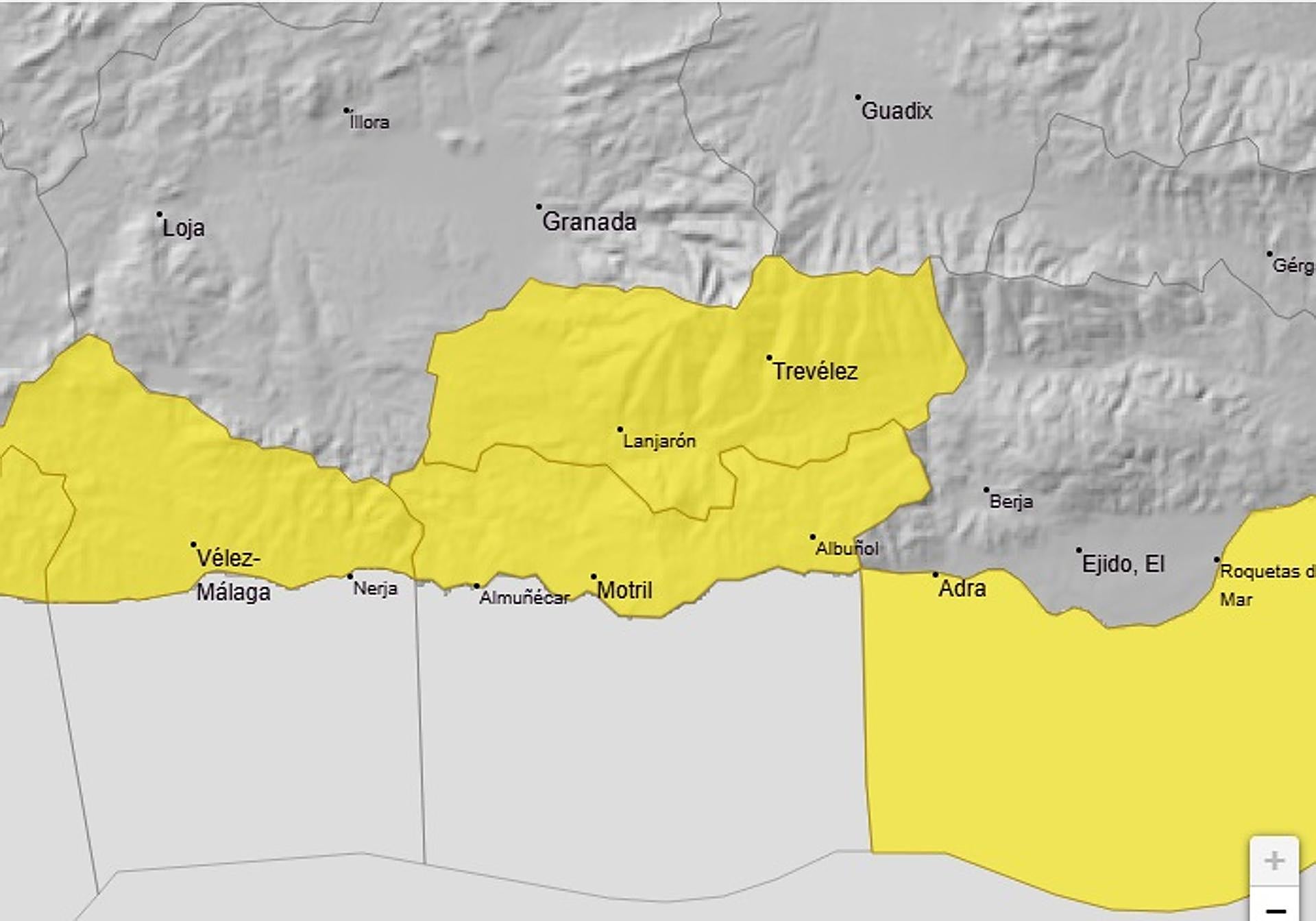 También se ha activado el aviso amarillo en la Costa granadina. Y, al igual que en el caso anterior, se trata de un aviso en las mismas circunstancias por acumulación de precipitaciones.