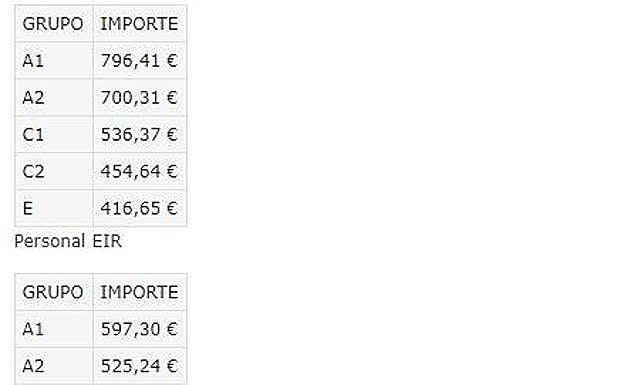 - Personal con relación laboral de carácter especial de residencia para la formación de especialistas en Ciencias de la Salud (EIR), la retribución equivalente al quince por cien del sueldo de tres meses más la parte proporcional de la paga extra, por una sola vez.