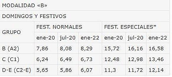 - Modificar las cuantías correspondientes al complemento de atención continuada personal no facultativo modalidad «B» que queda fijado en las siguientes cuantías: