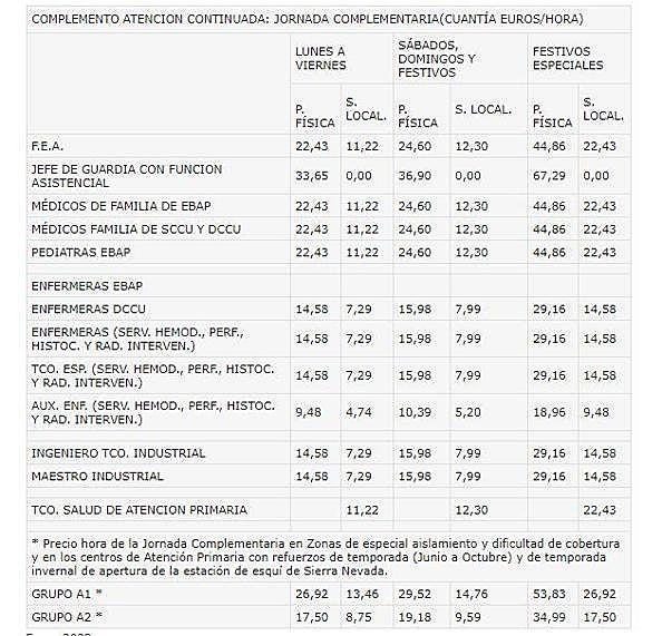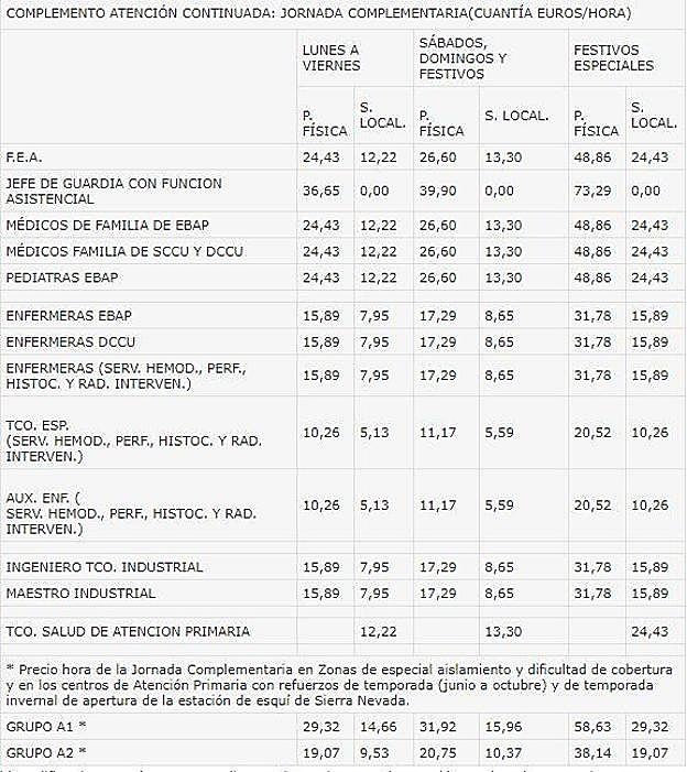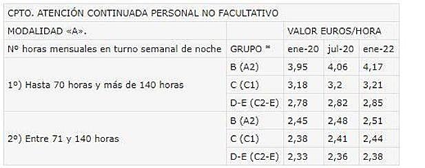 - Modificar las cuantías correspondientes al complemento de atención continuada personal no facultativo modalidad «A», que queda fijado en las siguientes cuantías: