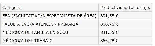 - Establecer un complemento de productividad, a partir de septiembre, para aquellos Licenciados sanitarios cuyo complemento específico es diferente a puestos con idéntico contenido funcional responsabilidad y jornada de forma que queden equiparadas ambas retribuciones.