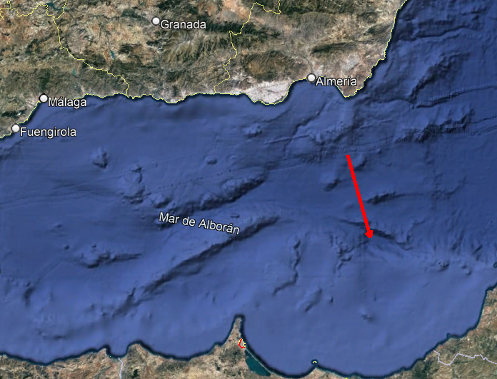 La imagen muestra (en rojo) la órbita que seguía la roca antes de impactar contra la atmósfera de la Tierra y producir la bola de fuego. El bólido se inició a 78 km de altura sobre el mar, sobre un punto situado a 36 km al sur de Almería. Finalizó a 29 km de altura sobre el mar, sobre un punto situado a 83 km de Argelia.