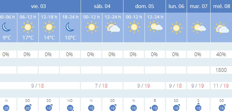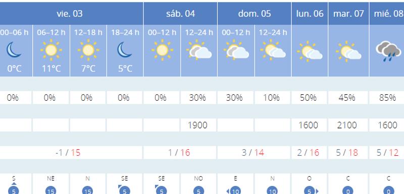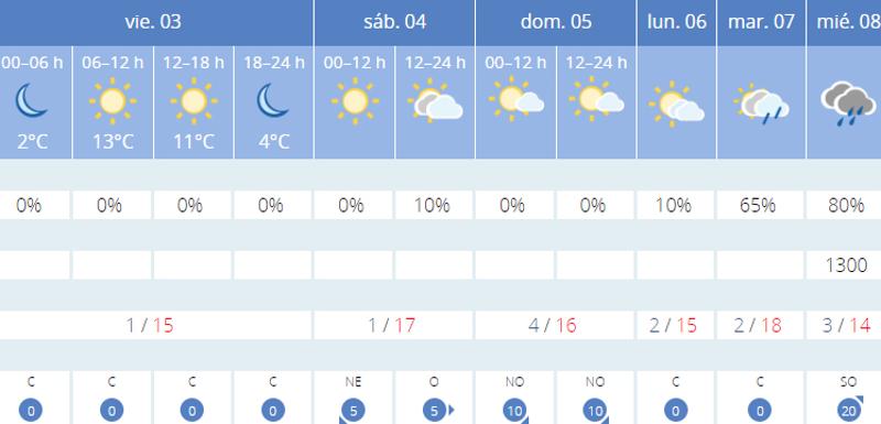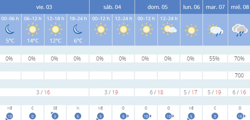 La temperatura más baja desde el viernes hasta el miércoles se registrará en Granada, donde se espera alcanzar los -1ºC durante el viernes. Desde esa fecha las temperaturas comenzarán a subir gradualmente. En el otro lado de la balanza se encuentran las provincias de Almería y Málaga, que según la previsión de la Aemet serán las que mayor temperatura registren durante las próximas fechas: 19ºC de domingo a miércoles en Almería y hasta 23ºC en el caso del martes en Málaga.