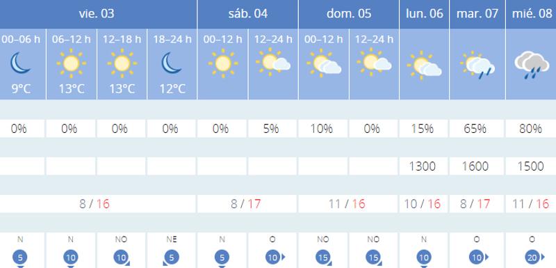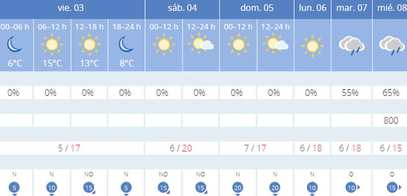 Un pequeño respiro a nivel laboral justo antes de la Navidad en el que se podrá disfrutar sin miedo a las precipitaciones, ya que según la previsión de la Agencia Estatal de Meteorología (Aemet), solo se esperan lluvias durante la jornada del miércoles 8 de diciembre, siendo Almería la única provincia que se libra del agua durante la totalidad del puente según la predicción meteorológica.