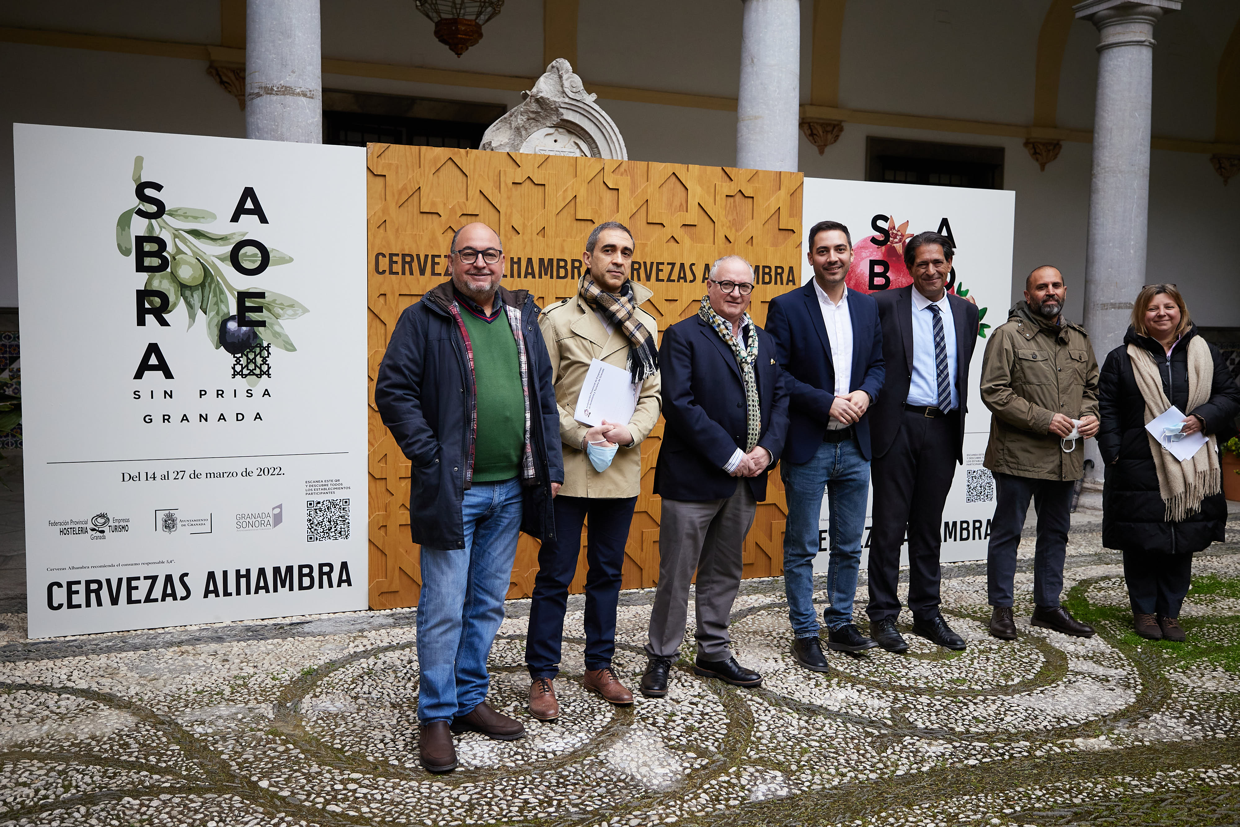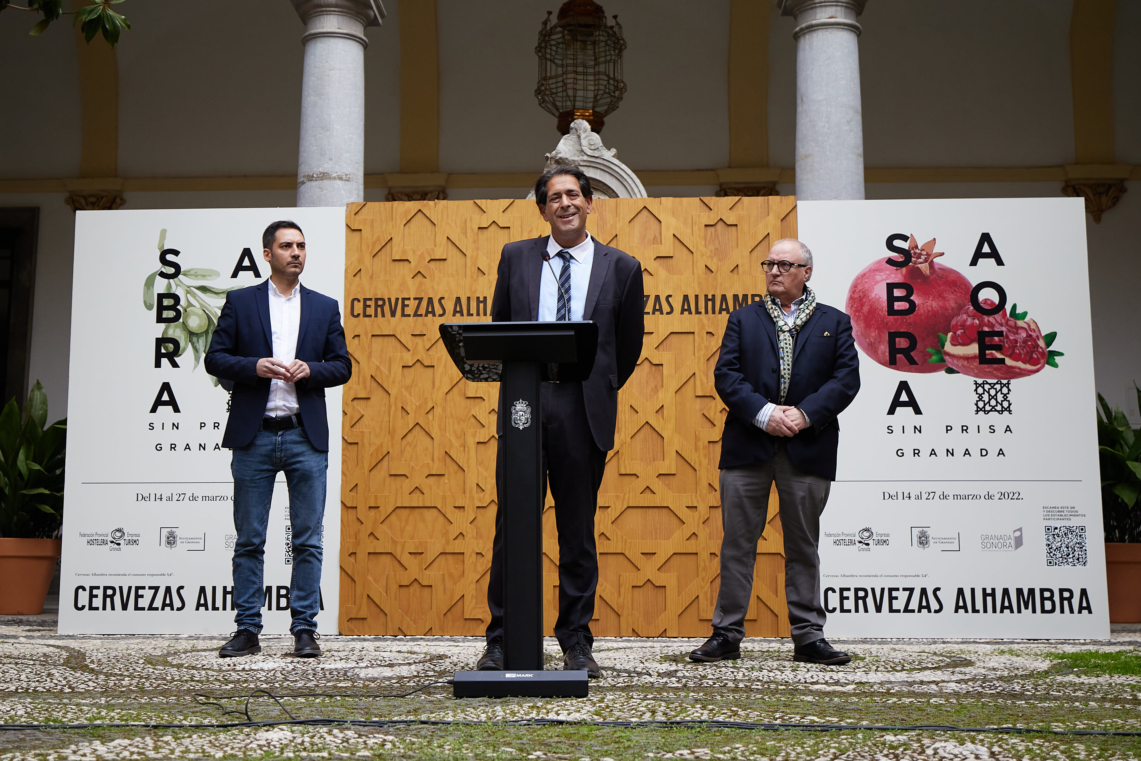 El certamen ‘Saborea Sin Prisa Granada’ fue presentado el pasado viernes en el patio del Ayuntamiento de Granada, lugar que sirvió como escenario perfecto para la puesta de largo del evento organizado por Cervezas Alhambra. En la presentación, el concejal de Turismo y Comercio del Ayuntamiento de Granada, Eduardo Castillo, comentó que el evento servirá para «potenciar los productos de la provincia de Granada». «Tenemos la suerte de contar con unos productos de primer nivel y una hostelería que ofrece una propuesta gastronómica de excelencia», añadió Castillo.