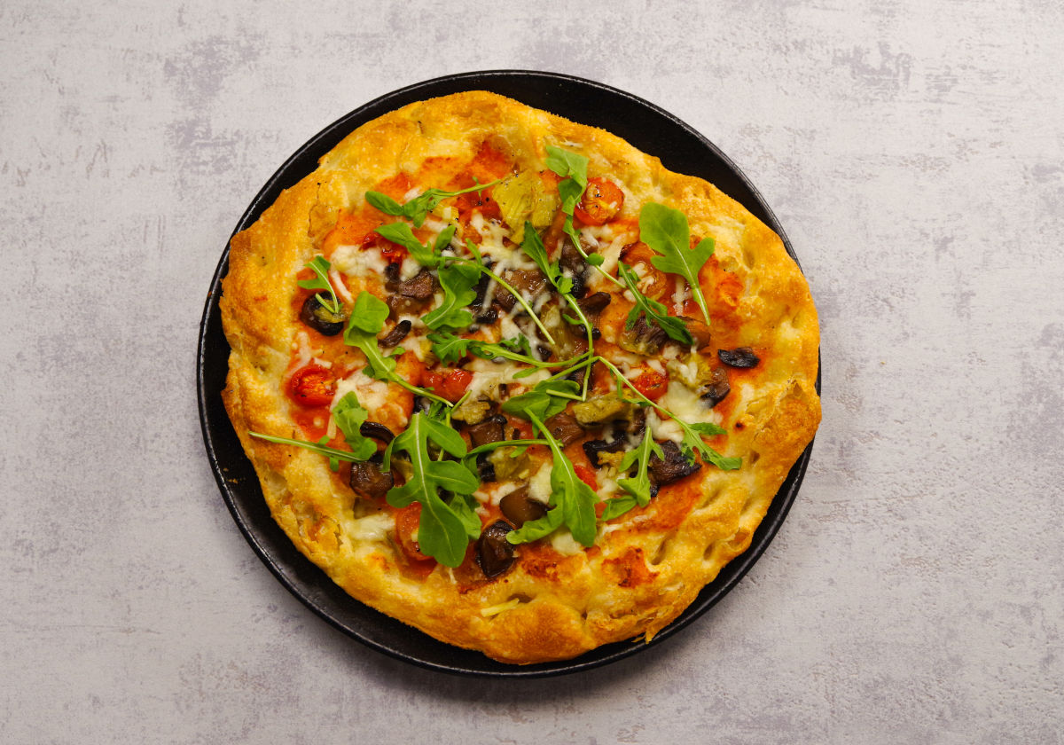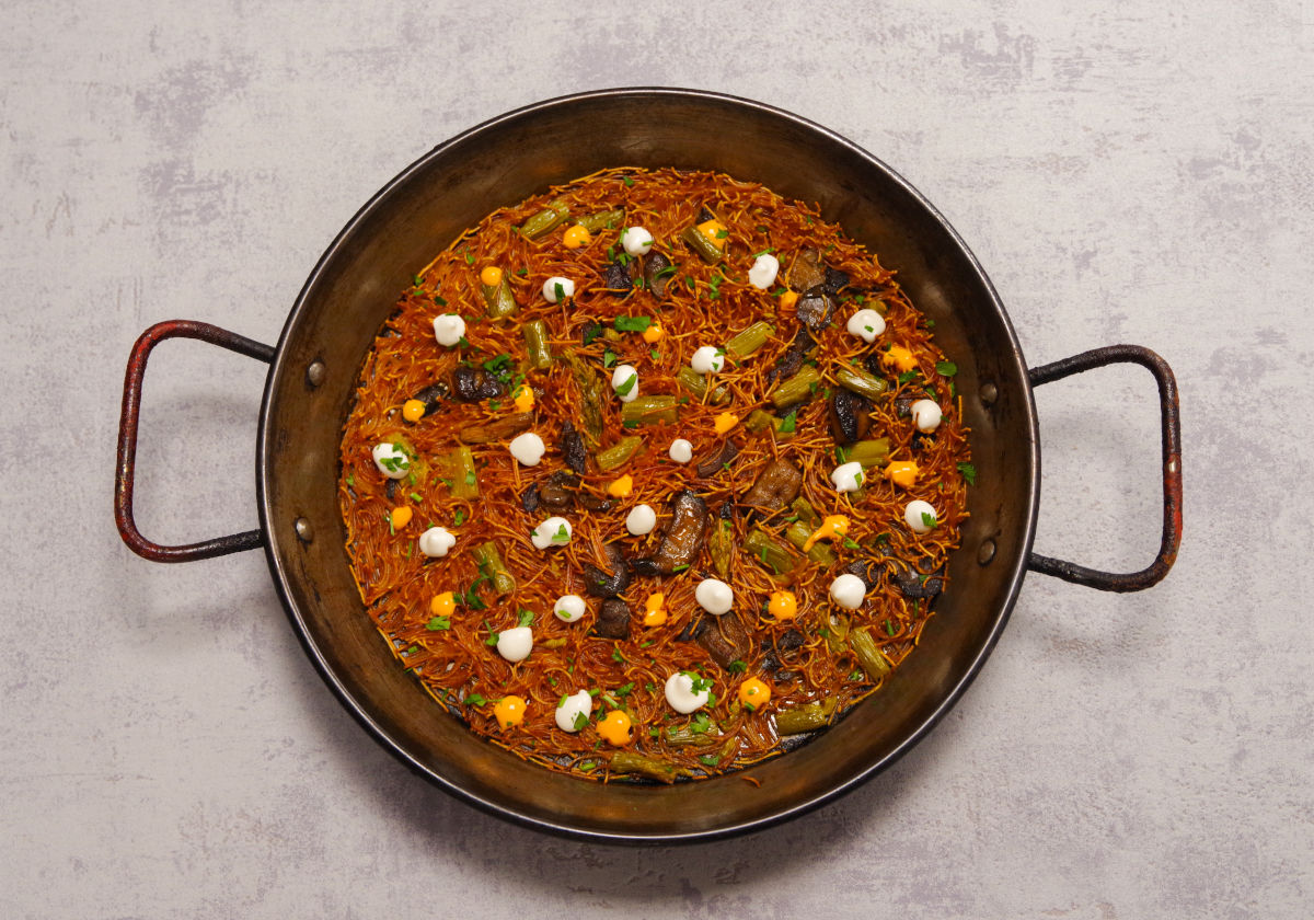 La carta continúa con opciones para compartir o disfrutar con calma: las alcachofas a la brasa con romescu y avellanas tostadas; la fideuá de setas y espárragos con un toque de alioli; los udon salteados con verduras frescas, salsa hoisin y anacardos; el canelón de espinacas con feta, bechamel trufada y mojo picón; o la pizza UVE, con base de focaccia, alcachofa confitada, setas trufadas y queso vegano.