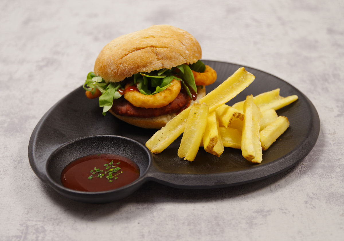 También hay versiones vegetales de clásicos muy queridos por los clientes del grupo, como el croquetón de bechamel trufada, además de opciones más contundentes como la hamburguesa vegana Beyond con aros de cebolla crujientes y rúcula fresca.