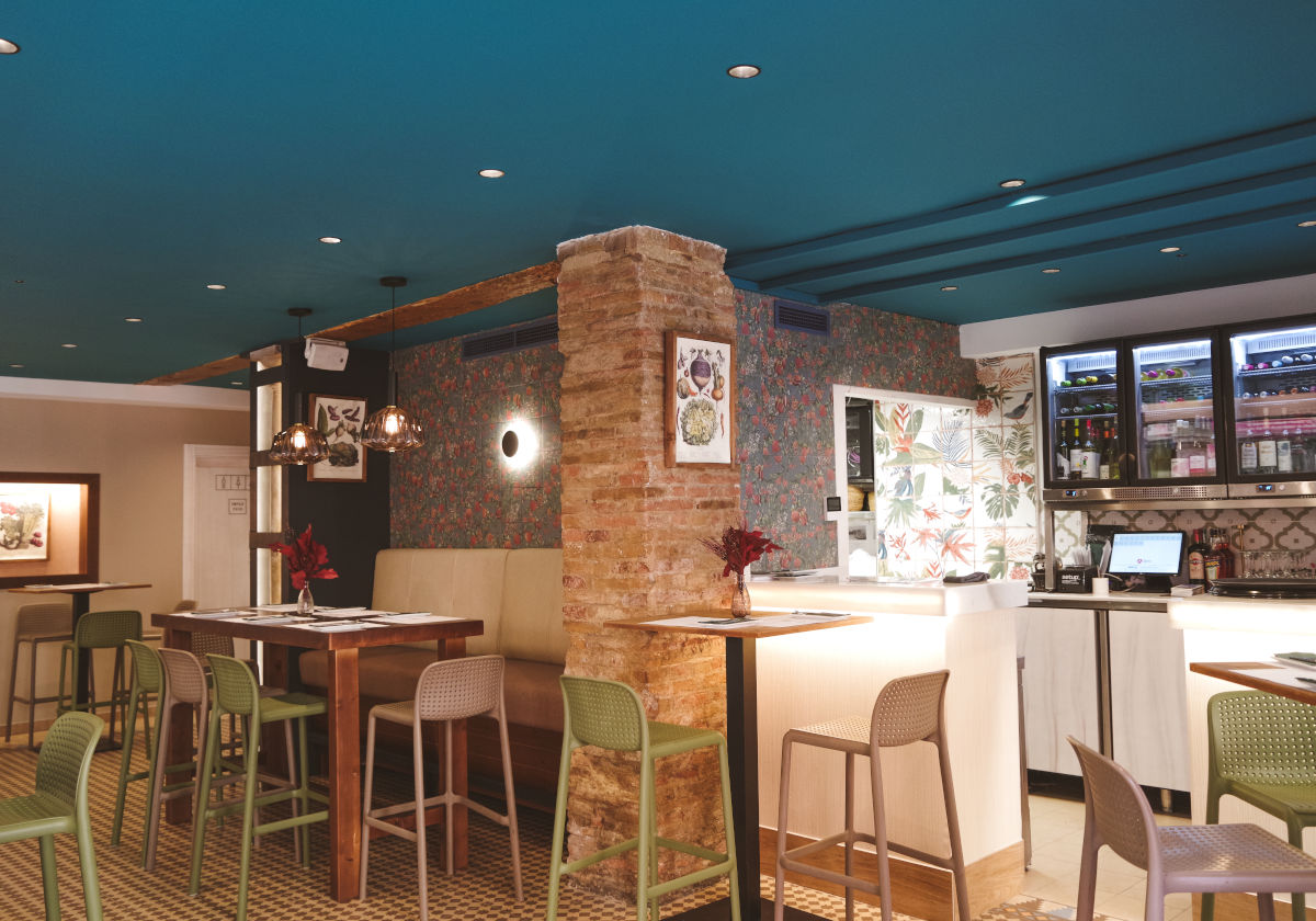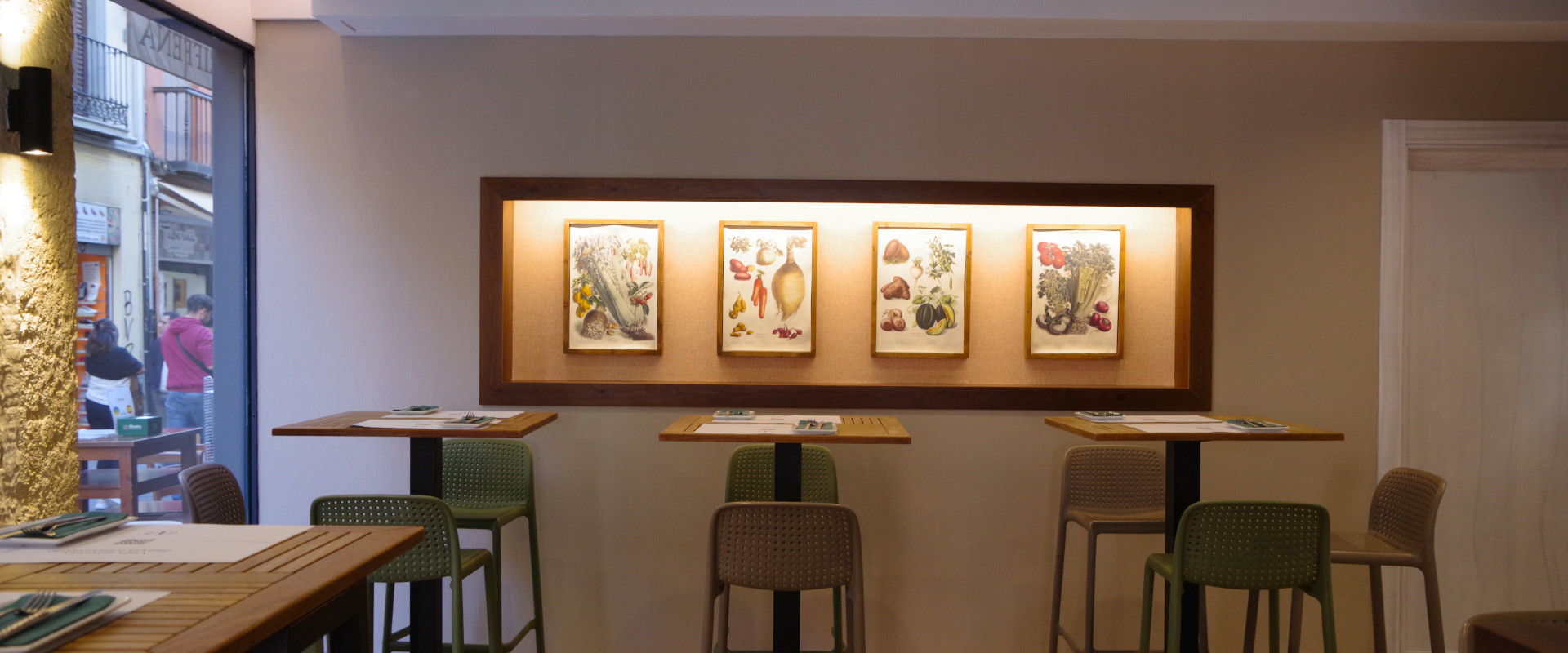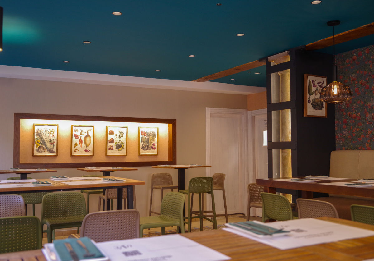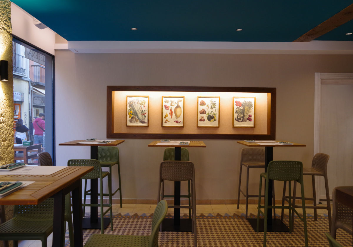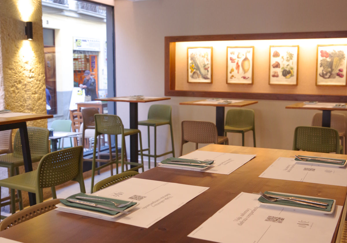 En la terraza que UVE comparte con Desde1917 Taberna conviven dos formas de entender la cocina. Un mismo espacio donde pueden reunirse comensales con gustos variados: quien busca una propuesta vegetal puede elegir de la carta de UVE, mientras que otros pueden disfrutar de los platos de la taberna. Dos estilos gastronómicos que se encuentran alrededor de la misma mesa.