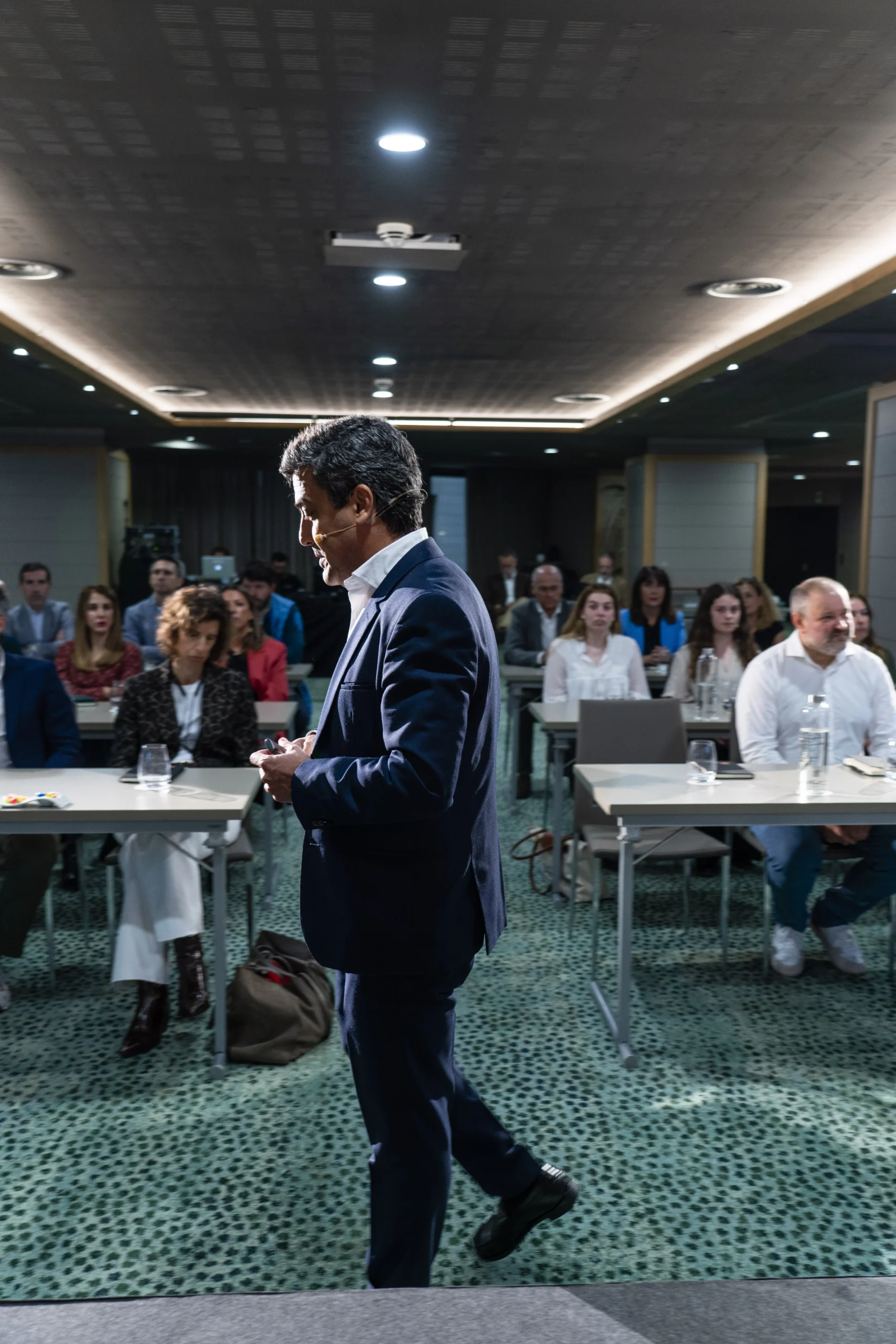 Pérez comenzó con una comparación entre la irrupción de internet en los años 90 y el momento actual: “esto de la inteligencia artificial hace dos o tres años sonaba a ciencia ficción. Hoy en día todos la estamos utilizando todo el rato.” Desde móviles y ordenadores hasta ascensores inteligentes, la IA ya forma parte de nuestra vida diaria, aunque muchas empresas aún no han definido cómo integrarla en su modelo de negocio. Aunque la clave, explica, radica en la calidad del dato. “Si metes basura, sacas basura. Ya puedes tener el mejor modelo de inteligencia artificial: si no tienes bien los datos, olvídate”, dijo con rotundidad. Todas las empresas —también las pymes— están llenas de datos, pero la mayoría no los aprovecha. Tenerlos no basta: hay que saber gestionarlos, limpiarlos, conectarlos y explotarlos. “El dato tiene mucho más valor del que creemos. Tenemos que ser capaces de activarlo y convertirlo en ventaja competitiva.”