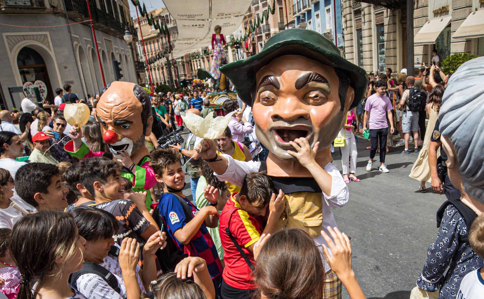 A las 12.00 dio comienzo el pasacalles. La plaza del Carmen estaba repleta. Encabezaban el cortejo los imponentes gigantes, que bailaban (dentro de sus posibilidades) al son de la charanga. La familia Jiménez lleva más de 50 años portándolos sobre sus hombros. Uno de ellos es José Andrés Jiménez, que lo hace desde hace una década. «Es gratificante, da alegría a los niños. Es una tradición de mi abuelo Ginés que hemos seguido, mi hijo es uno de los que hace relevos este año por primera vez», cuenta. Lleva a sus hombros unos 50 kilos, pero lo peor no es el peso, es la dificultad para mantener el equilibrio con una estructura tan larga. No importa, por ver los rostros de felicidad merece la pena.