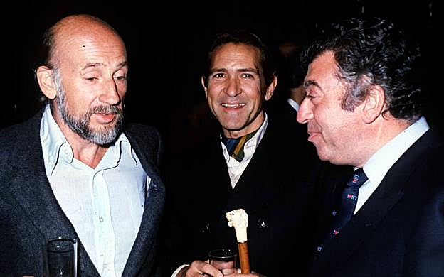 EFE Escolástico Medina siempre hacía gala de un gran sentido del humor. Incluso cuando narraba, con su habitual maestría, momentos de mucho apuro como cuando estuvo ante un pelotón de fusilamiento en la Nicaragua del Tigre Somoza. Una jovialidad que se hacía patente en fotografías como ésta, junto a Adolfo Marsillach y Antonio Gala.