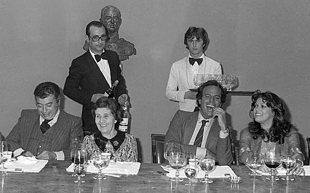 EFE Tico Medina, un tipo jovial y amigo de sus amigos, frecuentaba saraos donde también se fraguaban las noticias de la vida social. En la imagen, participando en la 'Cena del éxito' que organizaba Luis María Ansón junto a Josefina Carabias, Julio Iglesias y Ángela Carrasco.