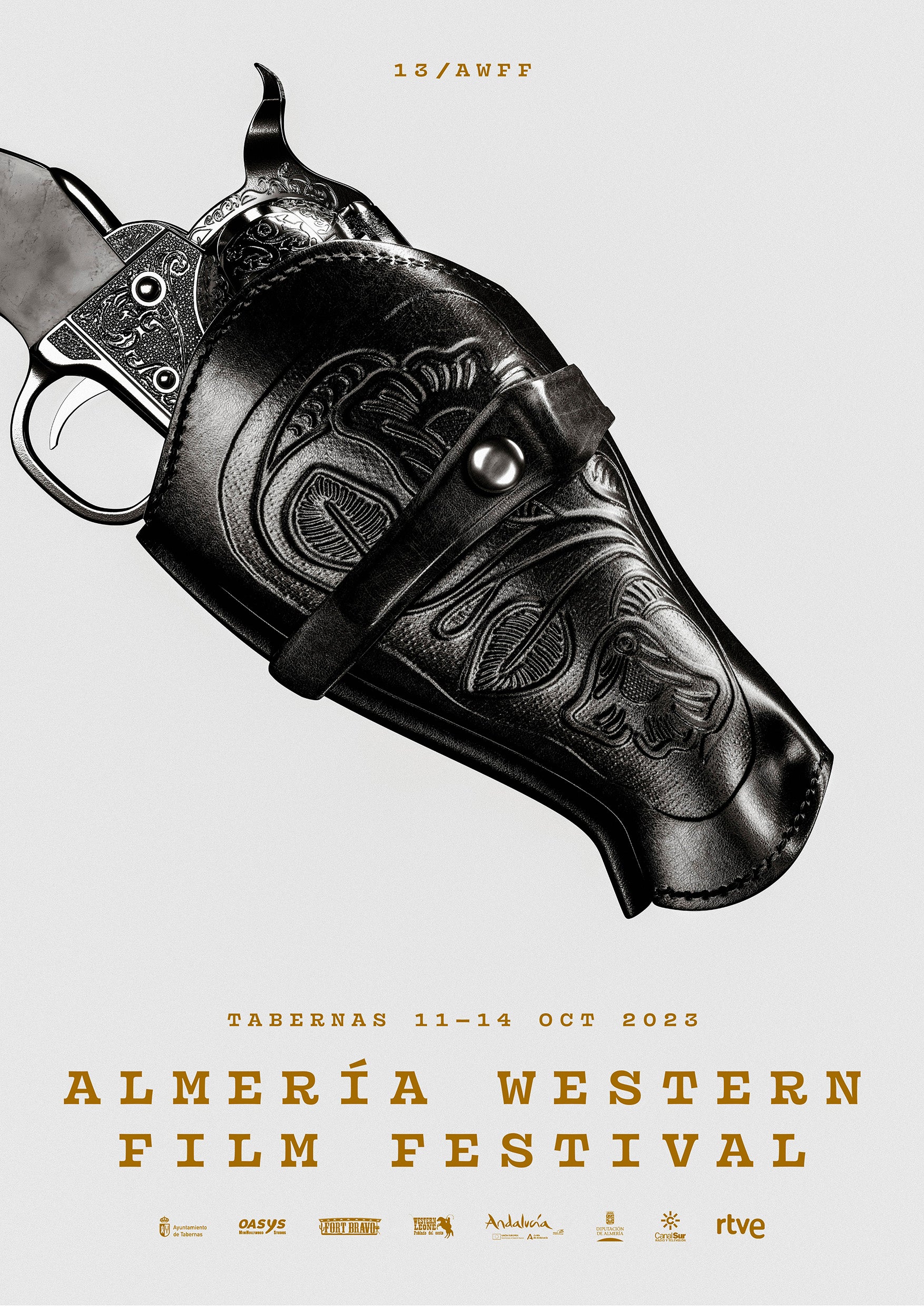Almería Western Film Festival (AWFF) presenta el cartel de su 13 edición. Su autor, el barcelonés Javier Jaén lo describe así: «Una pistola enfundada simula ... ser la cabeza del caballo. Esta fusión entre un elemento de peligro y una imagen equina representa de manera metafórica la personificación de la adversidad y la intriga, la dualidad entre el bien y el mal, el peligro y la valentía. Se destaca así la importancia de los personajes ambiguos y antihéroes tan representativos del cine wéstern».
