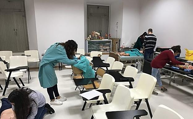 «Una de las cajas que tienen que descifrar los alumnos la escondo debajo de un muñeco que lleva un cartel en el que se lee que hasta que no le realicen una extracción de sangre no se va a levantar de la cama. Yo estoy vigilando que siguen los pasos correctos: los guantes, se lavan las manos, colocan el compresor, la aguja en su sitio... Veo si saben las técnicas y cómo se comunican entre ellos, algo que es clave en el trabajo real».