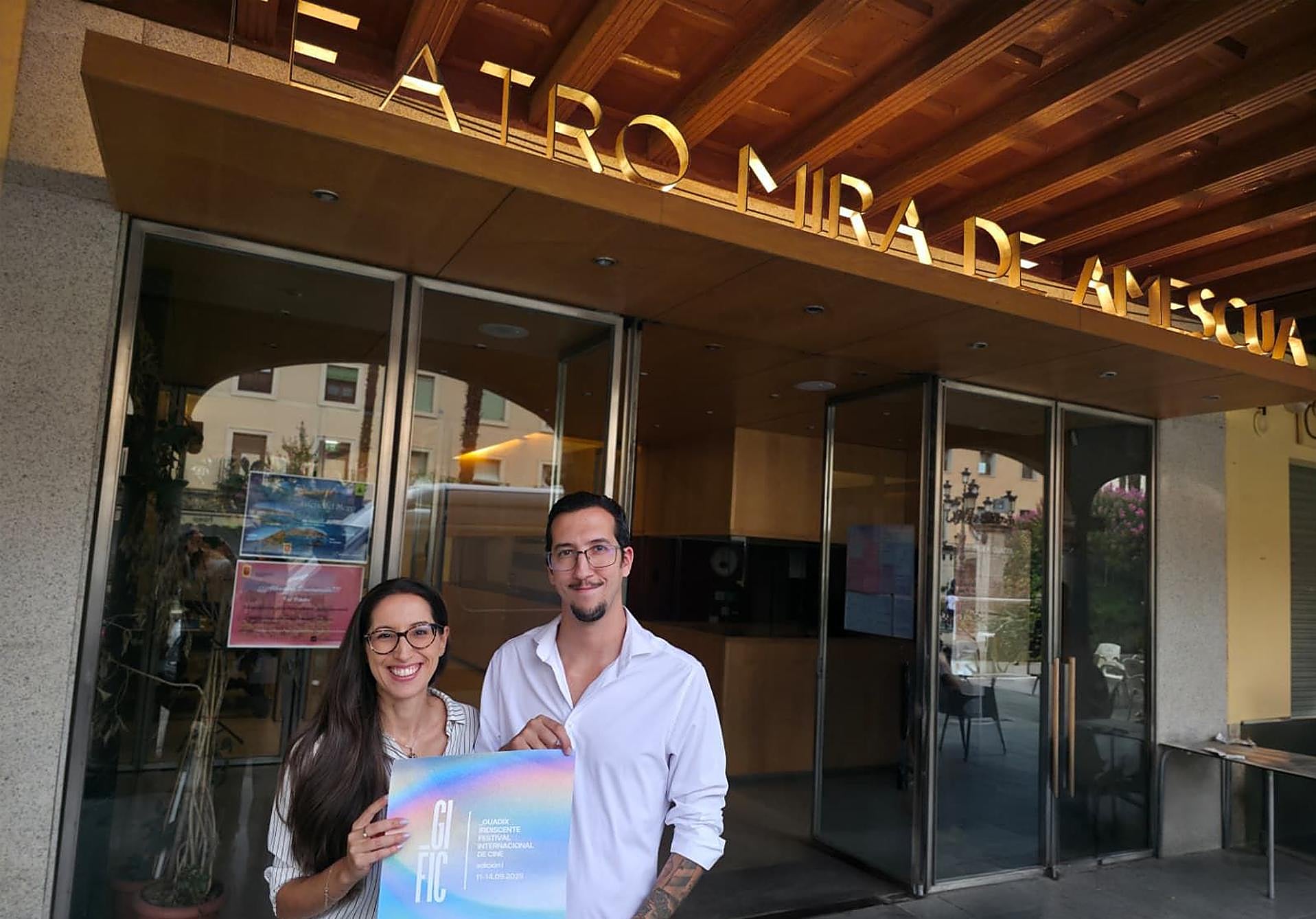 Fue una visión. Un flash. Un diálogo tranquilo que surgió en la más absoluta rutina. Una escena hogareña que se transformó, en ese mismo fotograma, en un inesperado giro de guion: «¿Y si organizamos un festival de cine?». Marta Pedraza y Jaime García tienen 35 años y viven en Guadix. Ella es profesora de Historia en el IES Pedro Antonio de Alarcón. Él, diseñador gráfico en una empresa de importación de productos textiles. Son pareja y los dos comparten un amor: el cine y las historias. Un amor que se materializó primero en Magazinema, una prestigiosa revista digital que cuenta con lectores en España y Suramérica. Y ahora lo hace levantando un auténtico cine –o tres– en las calles de su hogar: el Guadix Iridiscente Festival Internacional de Cine. El Gific.