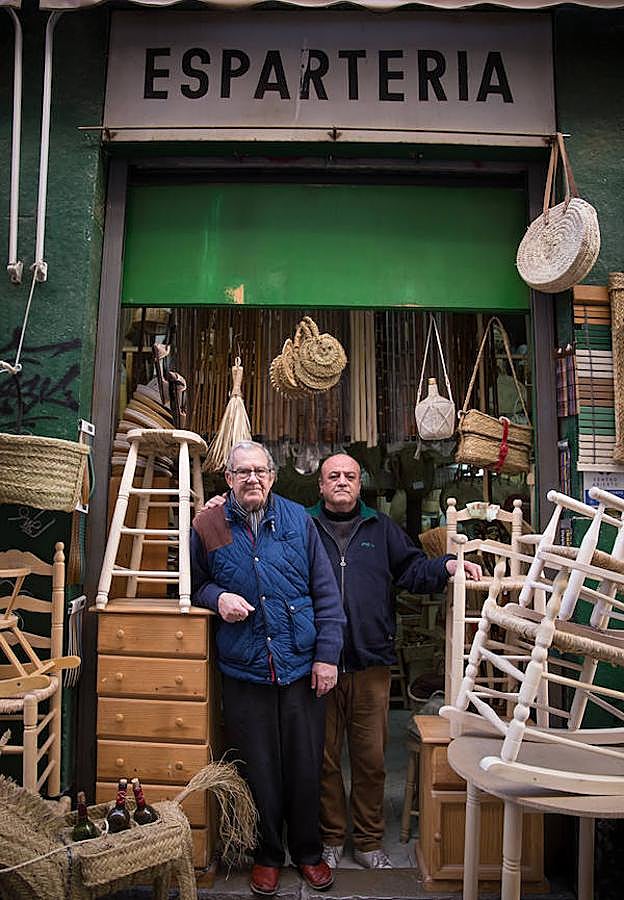 Muy cerca de la plaza Trinidad, en la calle Jáudenes, se halla la Espartería San José, fundada en 1907 por Antonio Rosales, bisabuelo de Jesús Molina, que ahora lleva las riendas de este negocio de 112 años, que se dice pronto. En este comercio, con la fachada pintada de verde, puede encontrar todo lo que pueda imaginar –y algo más– fabricado con esparto, pero también otros muchos artículos artesanales hechos en mimbre o madera (persianas, bastones, atriles preparados para aguantar el peso de los tomos de oposiciones...) Merece la pena asomarse al escaparate.No faltan ni las rimas: «Cubiertos de boj con los que las comidas saben mejor». Marketing del siglo XX que sigue igual de vigente en el siglo XXI. «Ahora sólo abren multinacionales y franquicias con unos horarios que son inasumibles para nosotros», comenta quejoso Jesús, que todos los días recibe la visita de su padre Manuel, 65 años 'tirando del carro' hasta que le sucedió su hijo Jesús, que iba para farmacéutico –de hecho llegó la licenciarse–, pero que al final se decantó por la espartería, que en 2018 recibió el premio Prestigio Turístico de Granada. «Última espartería tradicional y familiar de profesionales altamente cualificados y amable atención, que destacan por ofrecer una excelente calidad en sus manufacturas», reza la mención.