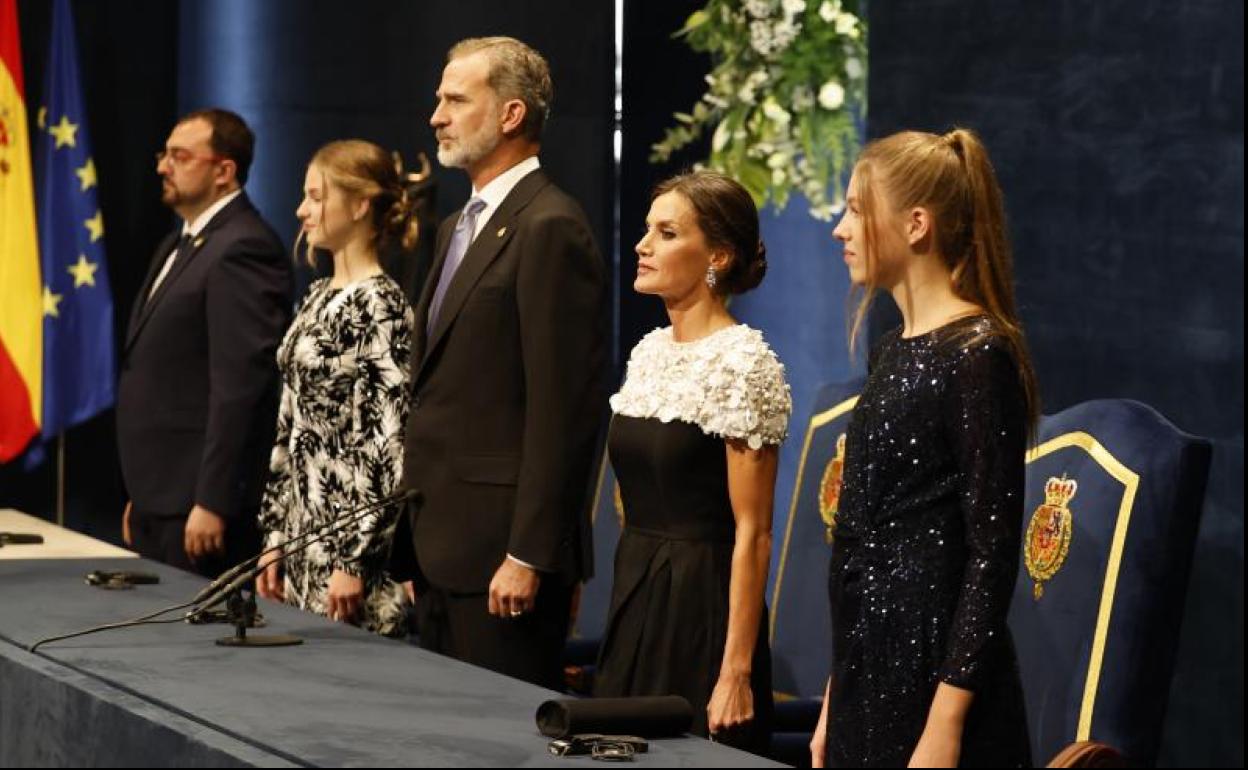 Los reyes Felipe VI y Letizia, acompañados de la princesa Leonor, la infanta Sofía, durante la ceremonia de entrega. EFE | Vídeo: Atlas