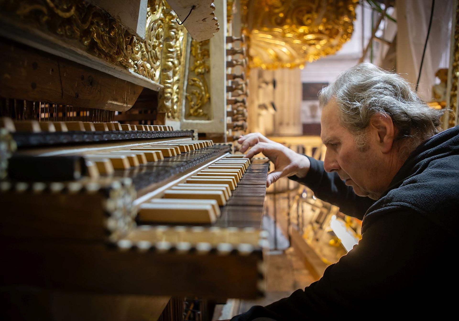 Queda faena por delante. Tras desmontar las entrañas, ya está todo en su sitio. No hay posibilidad de error. Todo está perfectamente localizado en planos de coordenadas horizontales, verticales y transversales y en un escáner de nube de puntos. «Ahora estamos instalando la lengüetería de la fachada y armonizando a la par», explica. Una labor que requiere silencio en el templo. «Trabajamos de seis de la tarde a doce de la noche, y dentro de unos días lo haremos de madrugada», afirma. Hay que probar, uno por uno, los 3.500 tubos que emiten notas musicales y los 4.000 canales que conducen el aire hasta ellos. «No solo tenemos que asegurarnos de que no haya pérdidas, sino de que no estén obturados».