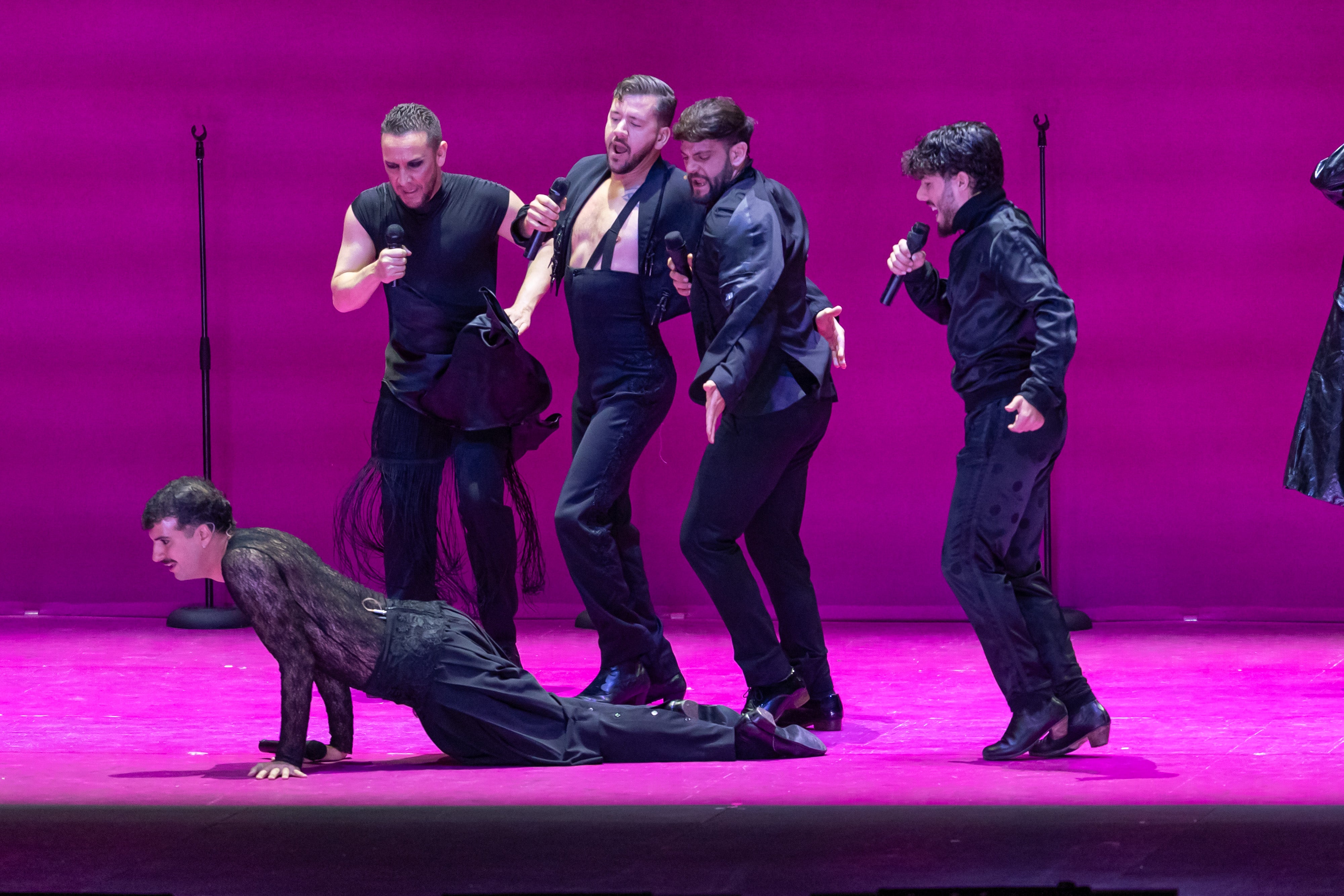 Los siete bailarines no solo ofician como tales, sino como cantantes. Canciones como 'Un clavel' o 'Me muero, me muero' arañan el corazón. Y más cuando las entona Mara Rey –los pelos como escarpias–. Una atmósfera coplera con norte flamenco. No faltaron las alegrías ni las soleás, pero tampoco los palos del folclore más español. Arte aderezado con una pizquita de humor –que no falte– y sobre todo mucha libertad y mucha 'locura'. Un cóctel que embriaga al público. Por eso la ovación fue tan atronadora.