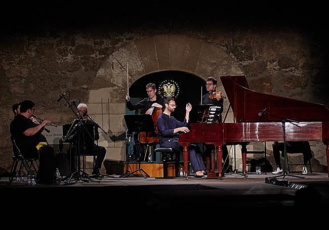 Nunca terminará de sorprendernos el bailaor sevillano Israel Galván, al que vimos recientemente en el teatro Alhambra manteniendo todo un espectáculo él solo, sin música ... de ninguna clase. Ahora, para el Festival Internacional de Música y Danza, este pasado martes, en el Patio de los Inocentes, del Hospital Real, se transformó para acompañar a un sexteto de música de cámara, dirigidos por el músico francés Benjamin Alard, compuesto por él mismo (clave), Miguel Colom (violín), Fernando Arias (violonchelo), Álvaro Octavio (flauta), Ángel Luis Sánchez (oboe) y Vicente Alberola (clarinete). Todo responde a un encargo del Festival al compositor algecireño José María Sánchez-Verdú –por lo tanto, estreno absoluto–, quien tuvo a bien remontarse a su paisano Manuel de Falla y su 'Concierto para clave y cinco instrumentos', una de las últimas composiciones en su estancia granadina. Sánchez-Verdú crea una pieza, 'Las ínsulas extrañas' basada en los referentes que pudo tener Falla para su creación; entre ellas, el 'Cántico espiritual', de San Juan de la Cruz, compuesto asimismo en el convento de los Mártires de Granada, cerrando un círculo paralelo entre todos ellos.