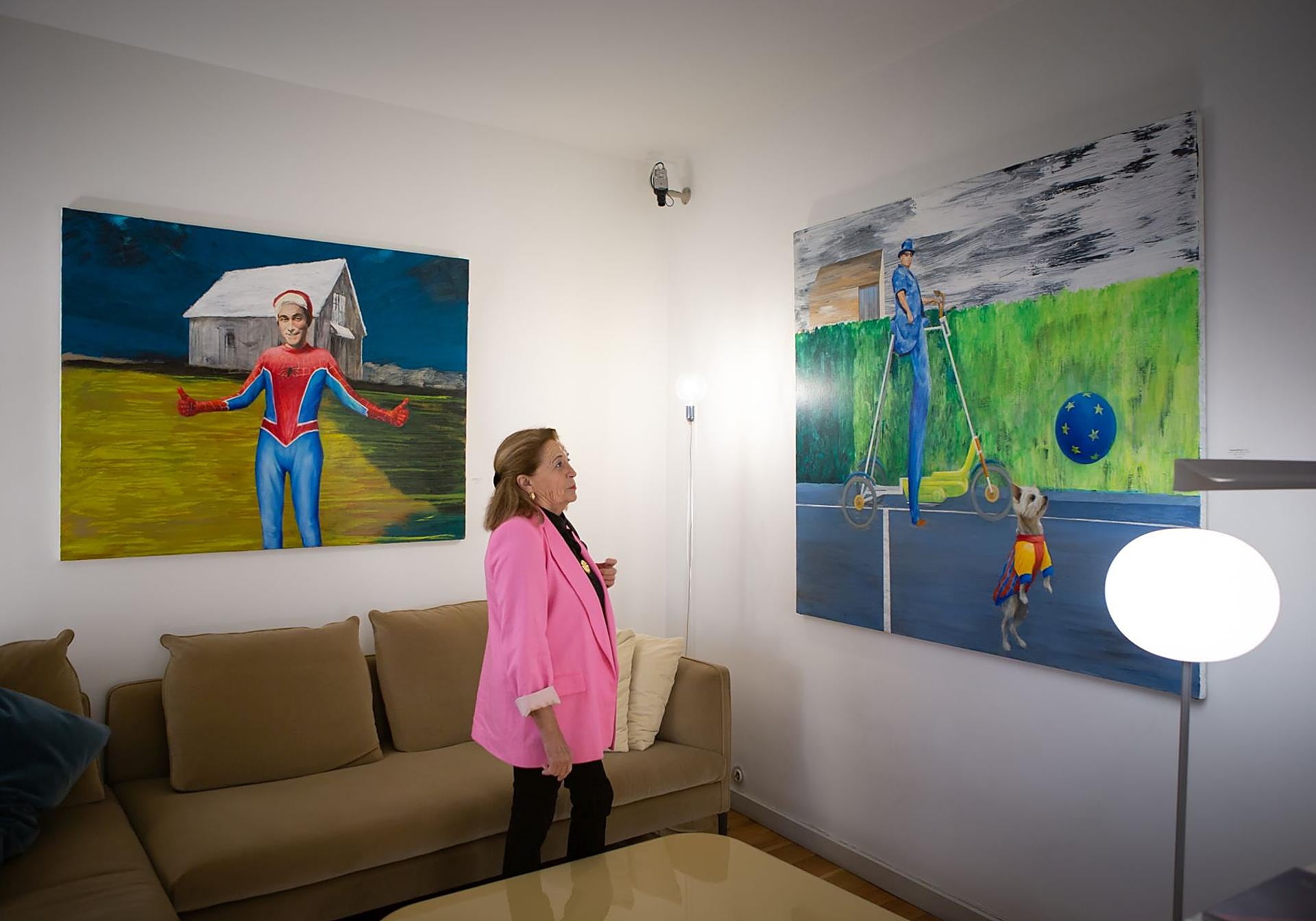 También resulta muy entrañable 'Trigonometría', donde un patilargo observa a un perrillo haciendo malabares con una pelota con las estrellas de la Unión Europea. O 'Quichismois', un Spiderman con gorrito de Papa Noel en posición victoriosa. Qué emocionante también el autorretrato de Juan Vida abrazado a su amigo Joaquín Sabina y que se titula 'Agosto'.