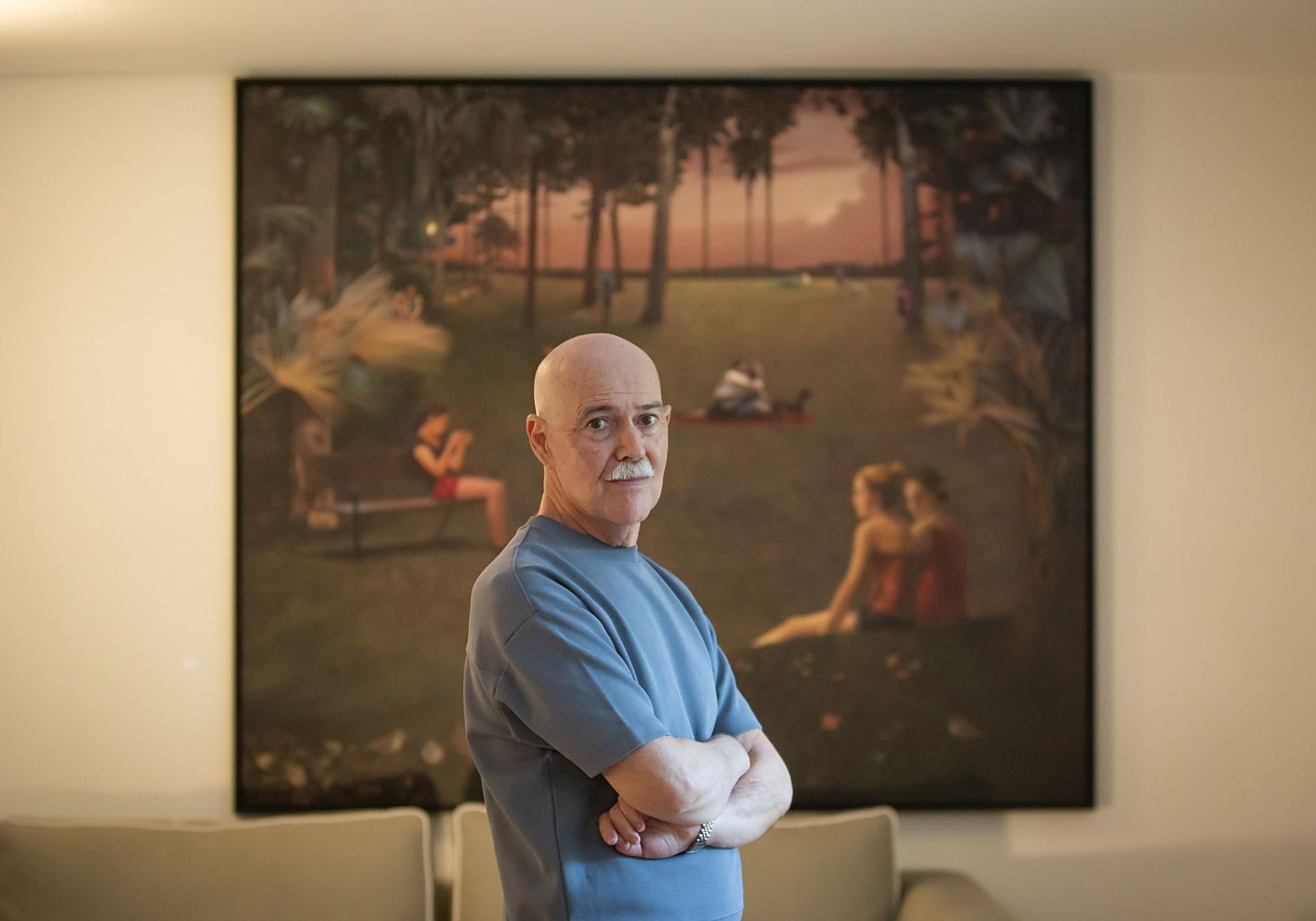 «Juan Vida –narra Joaquín Villegas– se disfruta en una galería o en un museo, pero bajo mi punto de vista se disfruta el doble en un ambiente doméstico». Y ese es el valor añadido que ofreceMenfis respecto a cualquier otro espacio. En el caso de 'La gran banana', la obra más grande de 'Cachorros', Joaquín Villegas ha cuidado mucho la iluminación, jugando con lámparas celestes y negras que aportan al cromatismo de la propia escena, en la que se aprecia un mono encima de una cebra y de fondo, una carpa circense.