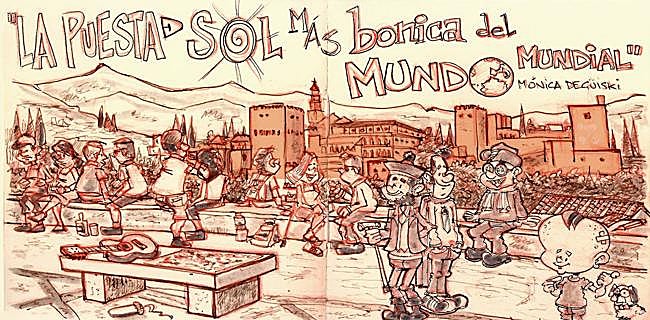 El cómic es 'Las aventuras del Capitán Graná (el superhéroe malafollá) y la Patrulla Farfollas', un tebeo que bebe de Astérix y de los clásicos de Brugera para contarnos la inesperada historia de un tipo decidido a defender su Granada por encima de todas las cosas. En este primer capítulo -habrá más, advierte-, el capitán y la patrulla se enfrentarán a unos promotores urbanísticos de Sevilla que se han propuesto construir un resort en la Alhambra: el Disny Park.