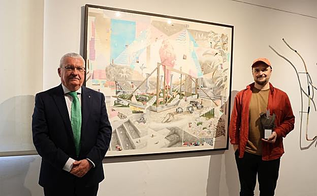 Por su parte, Santiago Talavera ha recibido el galardón correspondiente al segundo premio por 'Reinventar el espectáculo II'. Una obra en la que el artista albaceteño presenta un trabajo que combina acrílico, acuarela, collage, rotuladores, grafito, lápiz de color y spray sobre papel. «Ya estaba plenamente contento de estar entre los seleccionados. El segundo premio me llena de alegría, siempre ayuda a tener un empujón más para seguir haciéndolo como hasta ahora», ha manifestado.