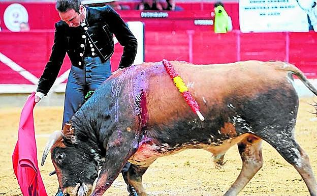 El novillo de Miranda Pérez Tabernero embistió con clase y temple sin que estuviera sobrado de fuerzas. Nada que impidiera al maestro de Chiva cuajarlo de principio a fin. Sobre todo por el pitón derecho, el lado bueno de un animal que colaboró para que el valenciano dictara su última lección en una plaza que lo idolatra. Ya con el capote se lució en unas buenas verónicas, aunque en ese momento el novillo salía suelto en cada lance.