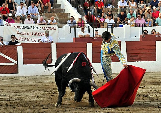 Volvía Pablo Aguado a Linares después de varios años sin hacerlo, dejando una actuación en el tercero de la tarde de esas que se recuerdan por la belleza de un trasteo que sólo los privilegiados pueden hacer. Con un traje malva y oro recibió a su primero, tercero de la suelta. El toro de La Palmosilla, castaño de pelo era el idóneo para el toreo del sevillano. Noble y con las fuerzas justas, galopó con clase al capote de Pablo Aguado que destacó en una soberbia media verónica que levantó un fuerte olé en el tendido. Volvió a repetir en el suave y bello quite por «chicuelinas» y otra soberana media. Viendo el juego del toro y la regularidad del torero sevillano durante toda la temporada, era de imaginar el acontecimiento que se avecinaba en la faena de muleta.