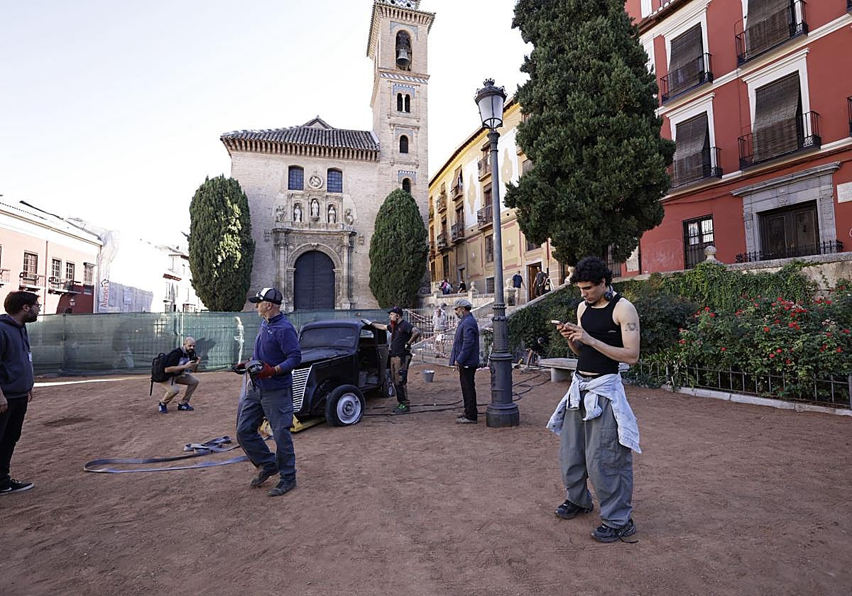 El miércoles, el rodaje arrancó en el Carmen de los Mártires para luego recorrer otros escenarios por el Albaicín. De hecho, el equipo de localizaciones terminó bien tarde,de madrugada, de preparar algunos espacios que están por venir. Sin embargo, todo apunta a que la escena más ambiciosa y complicada de estos días en Granada será la de Santa Ana.