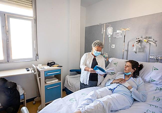 Un enorme rayo de sol entra por la ventana de la habitación 1022, en la planta de Oncología. La luz inunda la cama, el gotero, la butaca y los pinreles descalzos de Inma. En la mesita hay unos cascos y una Biblia. «La cogí de la biblioteca del hospital cuando ingresé», dice la mujer de 38 años, tumbada sobre las sábanas con un pijama azul. «He leído el principio, lo de la creación. Es interesante». Aurora, de 71 años, llama a la puerta con un libro bajo el brazo. «Soy voluntaria y hacemos lectura a pie de cama, ¿te apetece?», pregunta con voz entrañable. Inma asiente con una sonrisa mientras recoloca la almohada para escuchar el relato.