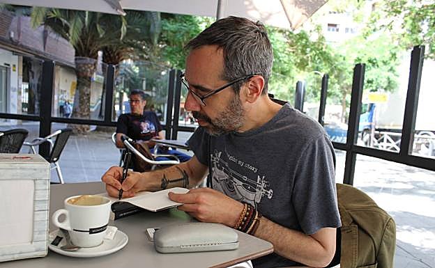 El ganador del premio Hammet y autor de 'Sinántropos' ha visitado esta semana Granada para participar en Gravite«Aquí empieza mi historia», dice la camiseta del tipo que acaba de pedir un café. Una brisa agradable serpentea la terraza del bar y remueve las páginas de libros y libretas sobre la mesa, como si fueran palmeras en la mar. El hombre sostiene la taza con su mano derecha, dejando a la vista una 'J' tatuada en la muñeca. «Venir de Pamplona a Granada tiene su cosa», bromea, repasando el abrupto trayecto. Viene para participar en el Gravite, el festival donde el tiempo y las artes se mezclan en el espacio. Porque el tiempo para él, para el tipo del café y la 'J', es algo relativo: es doctor en periodismo, profesor de escritura creativa, autor de una decena de novelas ('Cielos de plomo', 'El samurái errante', 'Soledad'...), guionista de cine y ganador de una decena de premios literarios. Su nombre es Carlos Bassas del Rey (Barcelona, 1974).
