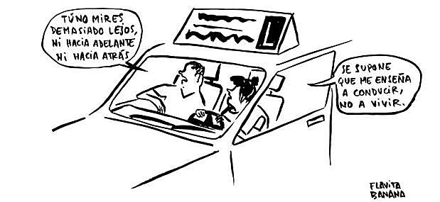 Supongo que es una especie de reto tener que obligarte a lograr que se entienda que hay una historia detrás una cronología, un antes y un después en una sola imagen. De hecho, muchas veces el chiste consiste en que no aparezca ese antes o ese después y que al completarlo el lector es lo que le haga gracia. Algunas veces sí hago tiras, cuando lo requiere mogollón, pero si no, lo que hago es obligarme a que haya una sola imagen y se concentre todo. También te obliga, sobre todo, a cómo colocar los personajes para que esté todo incluido; es por reto, es por cabezonería nada más.