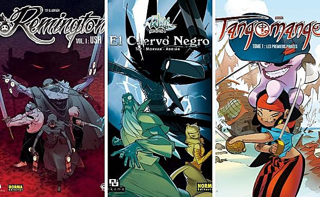 Adrián abre la libreta y saca uno de sus lápices de colores. En el momento exacto en que la punta roza el papel, una melodía se cuela en su cabeza: «No sé por qué –dice– pero últimamente cuando me pongo a dibujar tarareo la música de los combates de 'Bola de dragón'». En la última feria de Anguleme, la gran cita del cómic en Europa, se pasó horas y horas canturreando mientras dedicaba sus tebeos. Él es uno de esos autores que vive dos líneas temporales a la vez: la de Francia y la de España. Allí acaba de publicar el segundo número de 'El rey loba', su nueva serie. Aquí presenta 'El huérfano de Perdide' (editorial Spaceman Project), una formidable ópera espacial que lleva varios años triunfando en el mercado franco–belga. «¡Tenía muchas ganas de que saliera!».