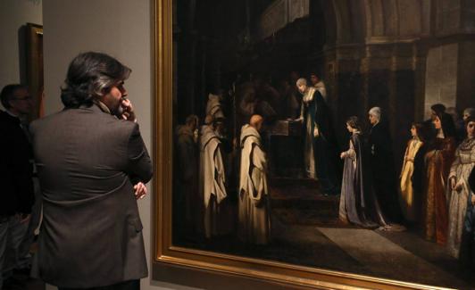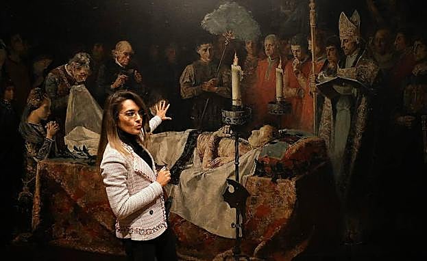 Qué se puede ver? Uno de los grandes reclamos es una reproducción de la 'Muerte del príncipe de Viana' (1887) de Vicente Poveda y Juan, discípulo de Federico de Madrazo, que llegó a la UGR en 1979 y que preside el Salón Rojo –se han programado visitas guiadas para verlo in situ–. Las comisarias Elena Díez Jorge y María Luisa Bellido reseñaron el carácter pedagógico de la exposición. En el caso de la 'Muerte del príncipe de Viana', por ejemplo, se han colocado unos paneles adicionales respecto los personajes principales que aparecen en la escena. Vicente Poveda y Juan, acuarelista español que cultivó temas de género, historia y paisaje, obtuvo la tercera medalla de la Exposición Nacional de Bellas Artes de 1887 con esta visión del óbito de Carlos de Viana (1421-1461), primogénito del rey Juan II de Aragón y Blanca de Navarra y, en consecuencia, heredero al trono de ambos.