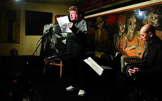 Foto cedida por La Tertulia Morente hizo de La Tertulia uno de sus principales sitios para estar. Aquí cantó, leyó, y rindió homenaje a algunos de sus amigos perdidos (en la foto, en un homenaje a Javier Egea). Aquí jugó al ajedrez, una de sus aficiones, y entre sus paredes compartió confidencias, risas y alguna que otra copa con amigos poetas e intelectuales como Luis García Montero, Mariano Maresca o el propio Tato Rébora.