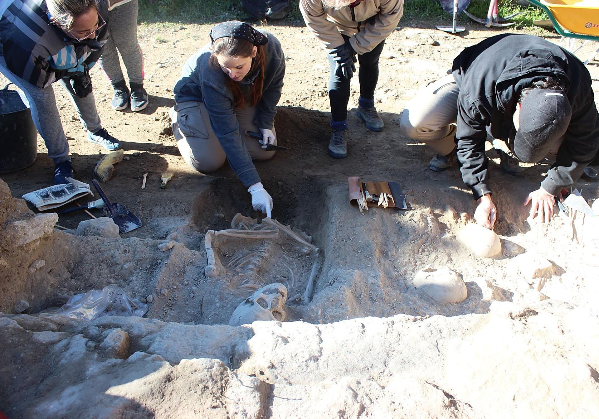 «Dada la posición de ambos, el enterramiento tuvo que ser simultáneo o, posiblemente, con algún tiempo de diferencia, días o meses, pero no muy prolongado ya que la descomposición de ambos se hace en el mismo periodo y quedaron esqueletizados preservando su colocación primigenia», explica la científica. O sea, o los inhumaron juntos o uno después de otro, pero con poca diferencia. El progenitor medía 1,63 metros y presentaba signos de osteoporosis, lesiones discales y degeneración de las vértebras, lo que se vincula a esfuerzos físicos o eventos traumáticos. La chiquilla, de poco más de un metro de estatura, muestra señales leves de desnutrición (anemia) o problemas de absorción de vitaminas.