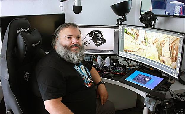 El despacho está preparado para todo, incluso para los niños. Mientras que él levanta mundos en tres dimensiones y construye los cimientos de una realidad virtual en la que, tarde o temprano, también viviremos, Lucas lee un cuento sentado en una pequeña silla. «Le llamamos así para darme el gustazo de poder decir 'Luke, yo soy tu padre'», ríe, con aires de Darth Vader. Su hija mayor, Elora, dibuja con lápices de colores, tumbada en el suelo. «Elora, como la de 'Willow' –apunta–. Aquí 'Willow' es la película que se ve siempre en Navidad». El papá de Lucas y Elora es uno de los pioneros en el 3D de España, maestro de maestros y referencia nacional desde que tenía poco más de quince años. Y todos le llaman Pococo.