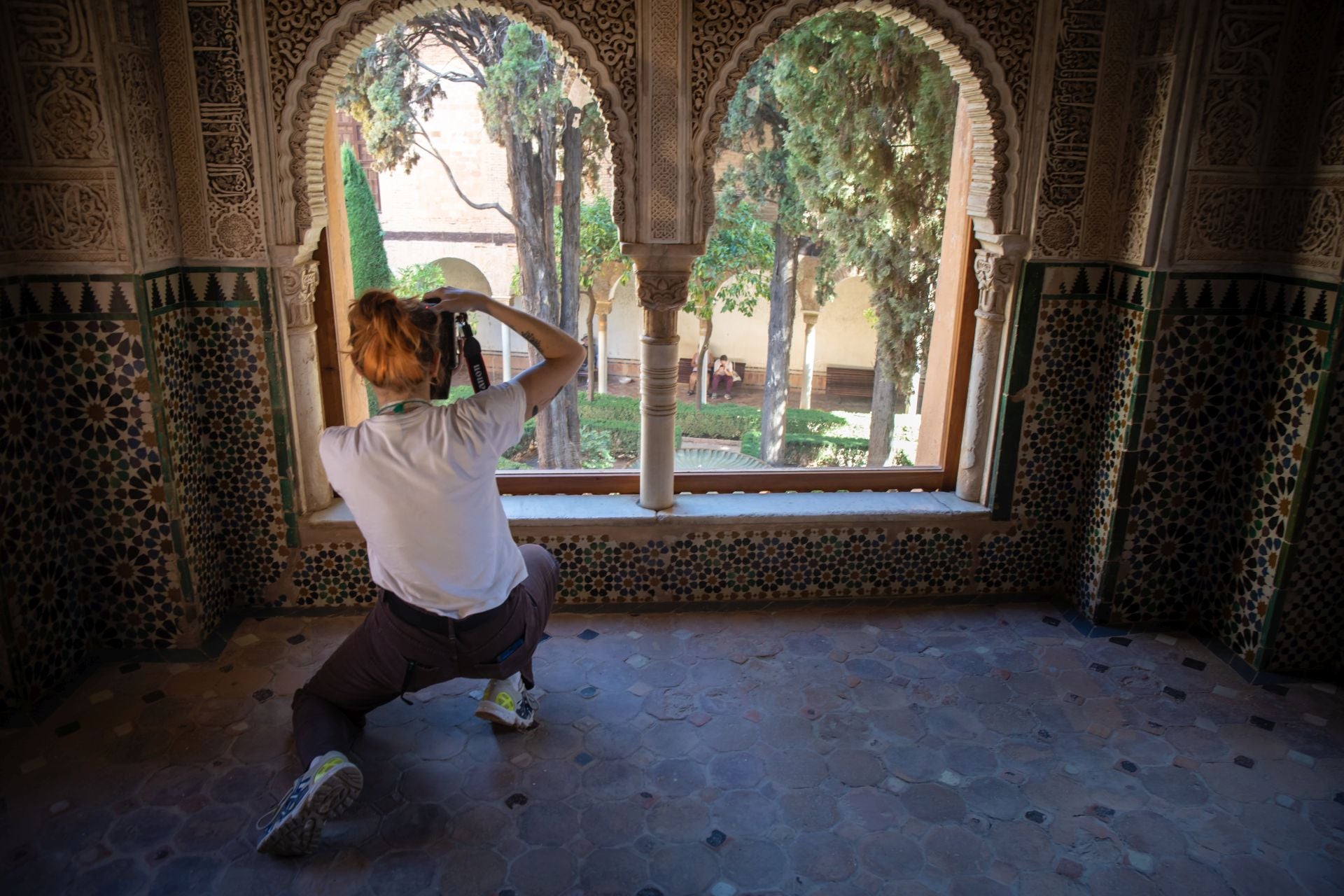 Metámonos en la diabólica cápsula del tiempo, esa que nos permite viajar desde el Pleistoceno hasta este preciso momento en que usted está leyendo este reportaje. Septiembre de 2025. Decenas de turistas, cámara en ristre, aguardan su turno para fotografiar uno de los rincones más bellos de la Alhambra, el Mirador de Lindaraja, con sus dos preciosos balcones gemelos enmarcados en un arco apuntado con mocárabes colgantes. Y trasladémonos ahora ciento dieciséis años atrás, hasta noviembre de 1909. Un hombre con rasgos fuertes y físico vigoroso retrata en el Mirador de Lindaraja, con el único murmullo del agua, el jardín de Daraxa con su fuente del siglo XVI, sus árboles puntiagudos y sus setos perfilados con escuadra y cartabón.