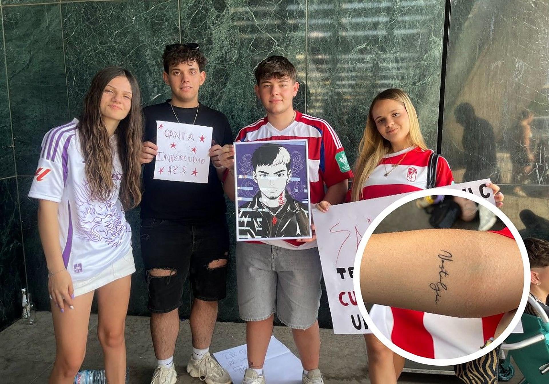 Así había categorizado la gente a los segundos que habían llegado al hueco de las escaleras: «los de Madrid». Aunque de Madrid tenían poco: a ese grupo se les unían chicos de Ciudad Real, Barcelona, Bilbao y Valencia. Se conocieron por un grupo de fans de Saiko en redes y decidieron atrincherarse juntos. Una de ellas, Inés, se había tatuado el nombre de «Nostalgia», una canción del último álbum que ha sacado el artista. «Me la tatué a los tres días que sacó el álbum. Me quería poner la primera canción por la que lo conocí, pero es que sacó Nostalgia y tuve que ponerme esta sí o sí», contó.
