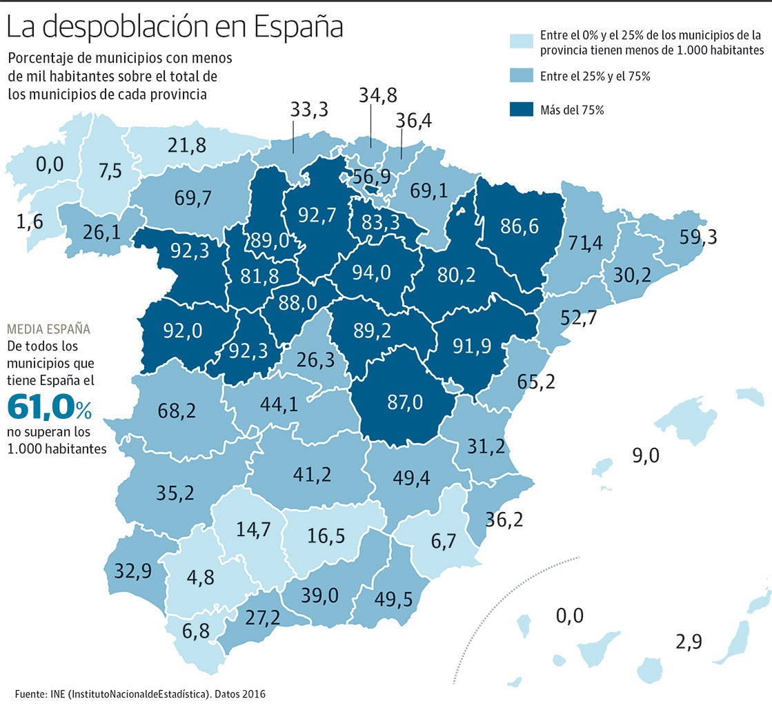 En su opinión, sin embargo, otros lugares no correrán la misma suerte. Son pueblos que nacieron al calor de actividades concretas, como explotaciones mineras o agrícolas, que ya no están en activo o han entrado en declive. Así no hay incentivo para quedarse.